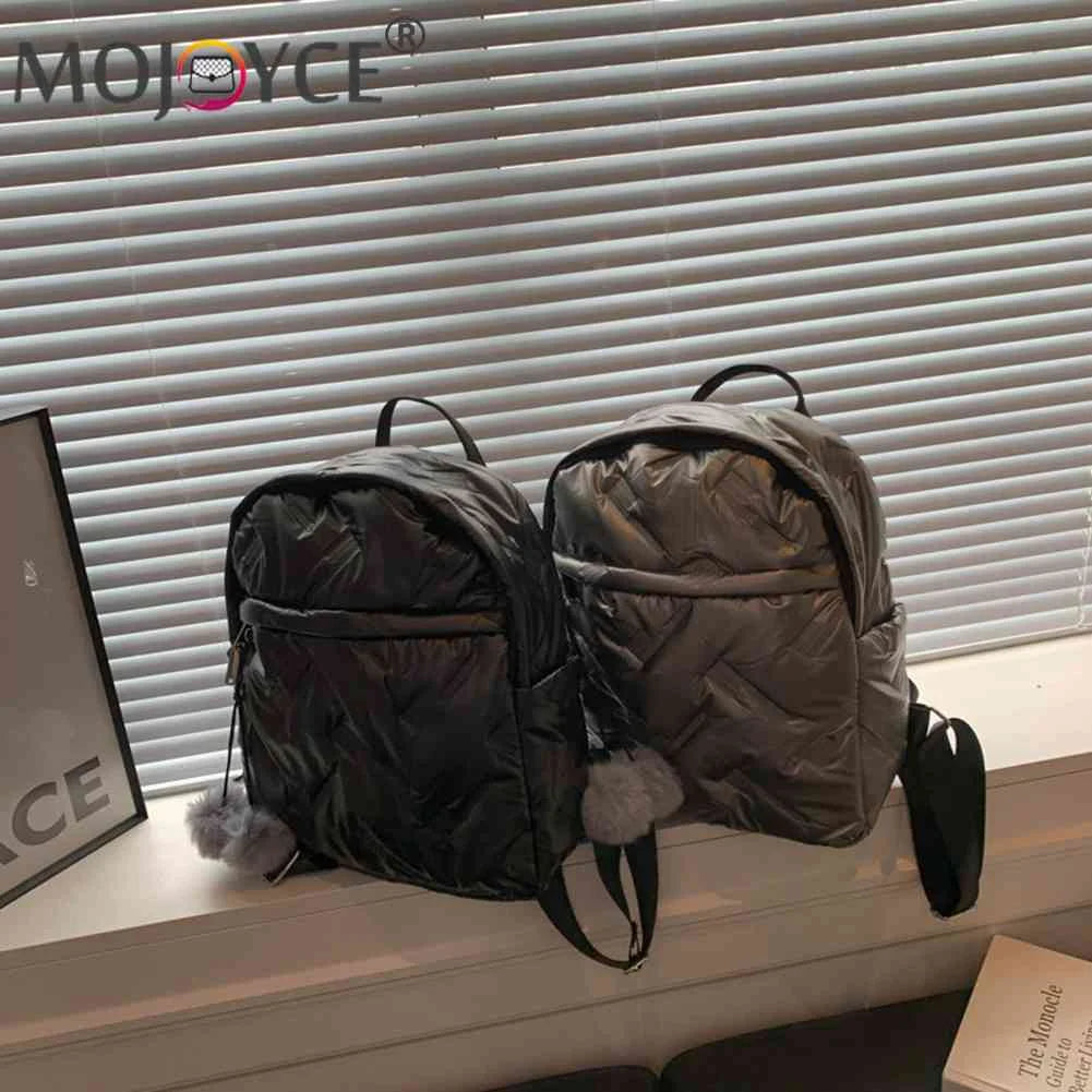 Waterproof Padded Backpacks Solid Women Student School Bags Zipper Quilted