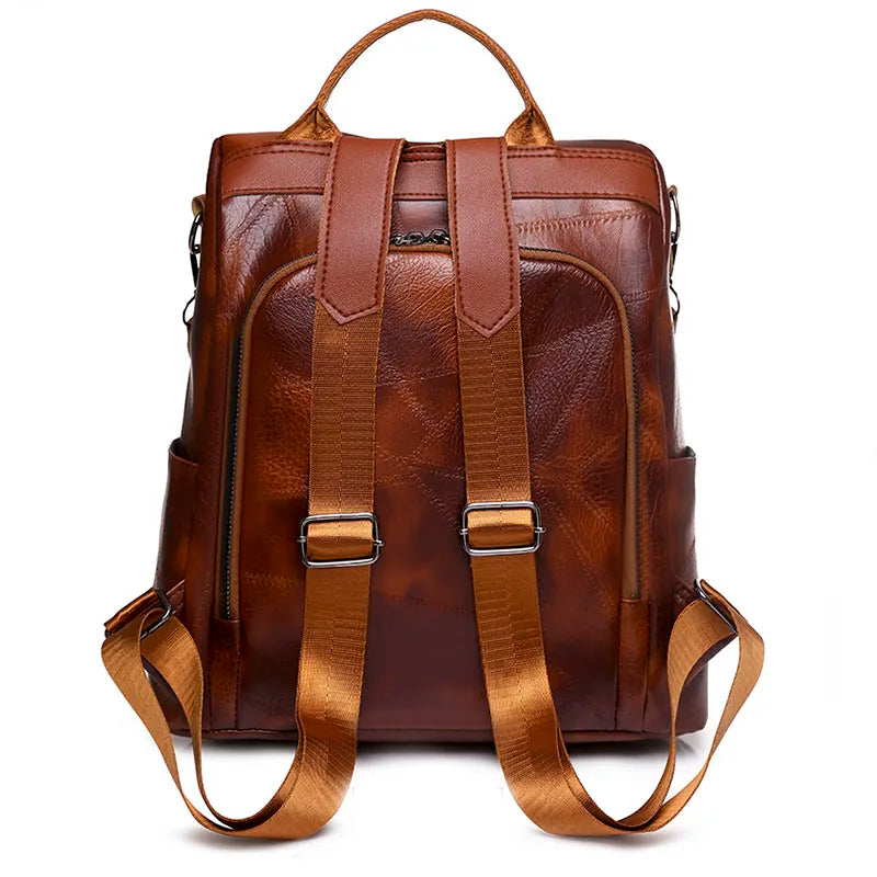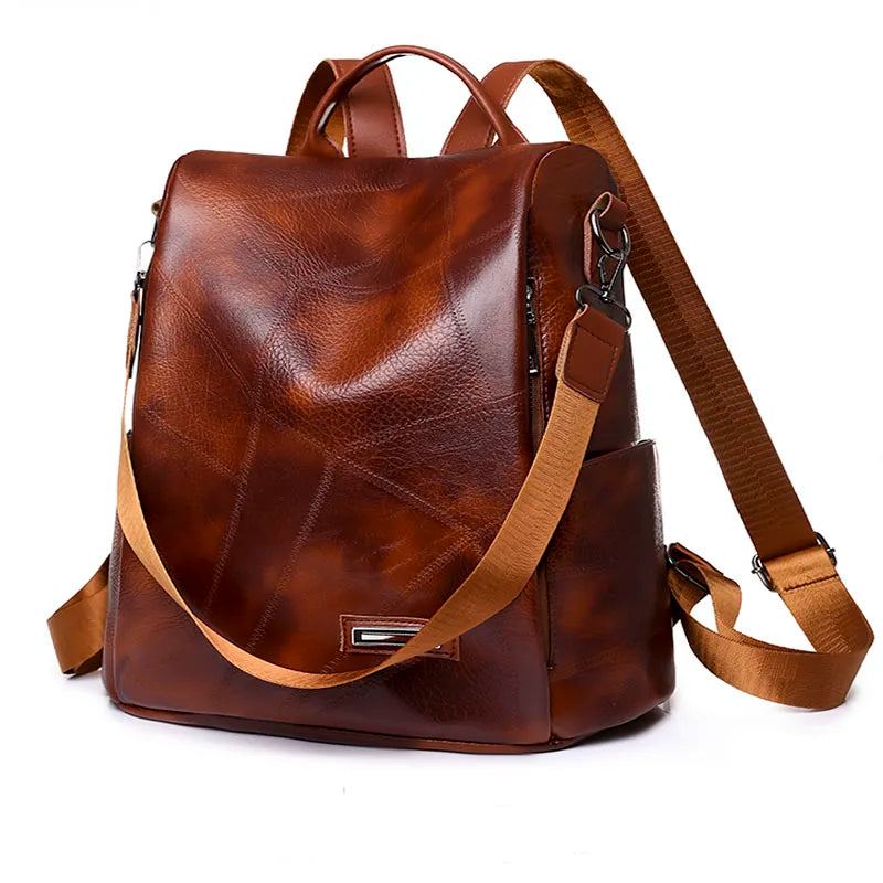 This backpack is made of waterproof PU leather, perfect for light travel and school use. It features a casual style and can be comfortably worn as a shoulder bag.