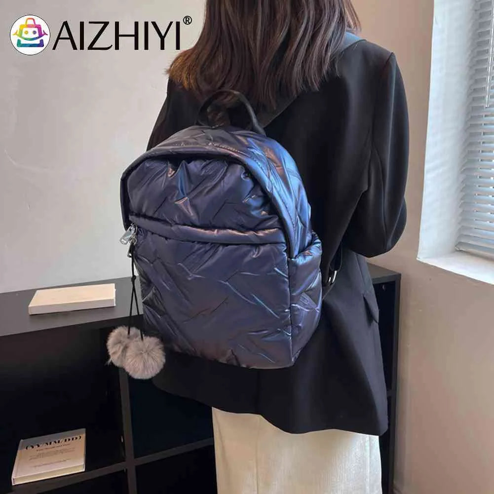 Waterproof Student School Backpack Winter Casual Quilted Cotton Bag