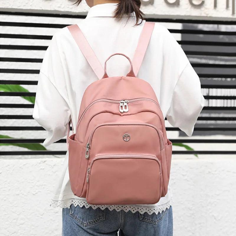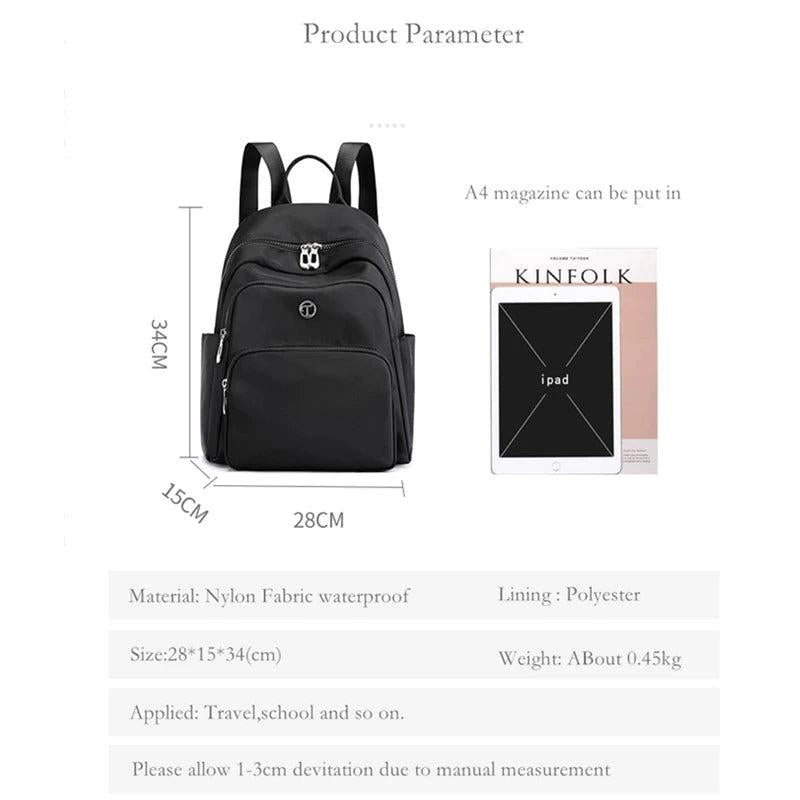 Stay stylish and organized with this versatile women's backpack. Made of waterproof nylon, it features a large capacity for all your essentials.