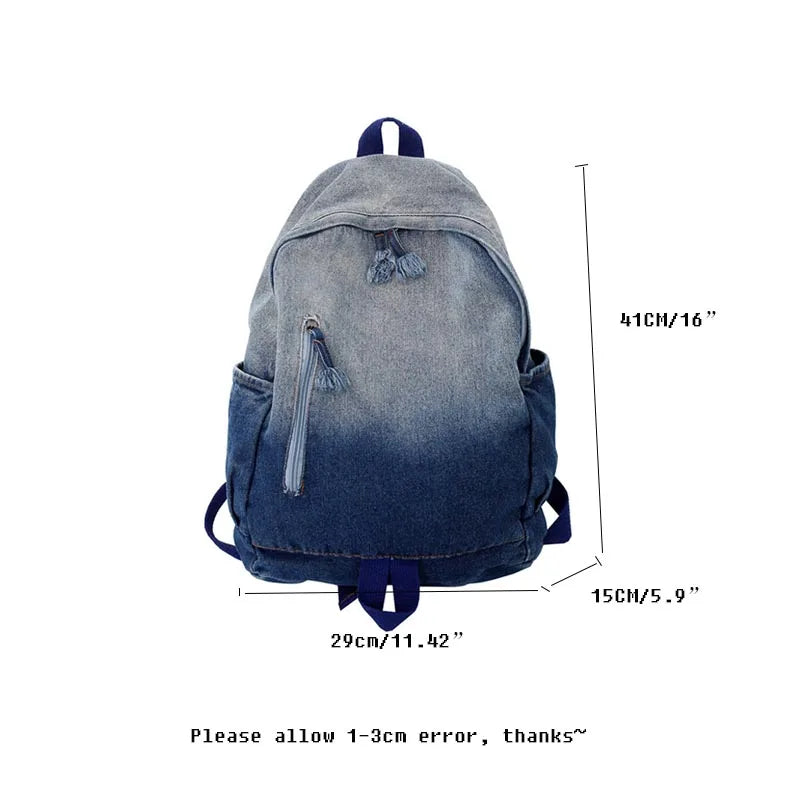 Stay stylish and organized with this Wehyah Denim School Backpack. Perfect for girls and women, this bag is designed for school, work, or everyday use. Featuring a denim material, it is durable and fashionable.