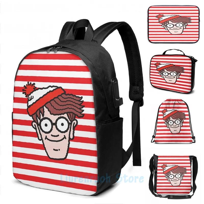 Where's Waldo Face USB Charge Backpack School Bag
