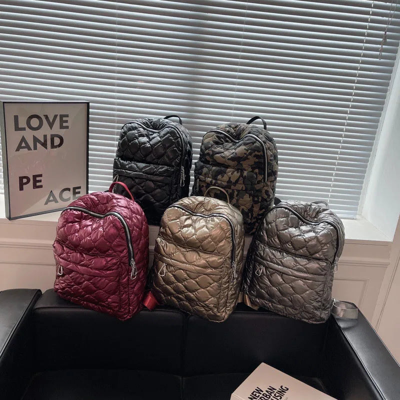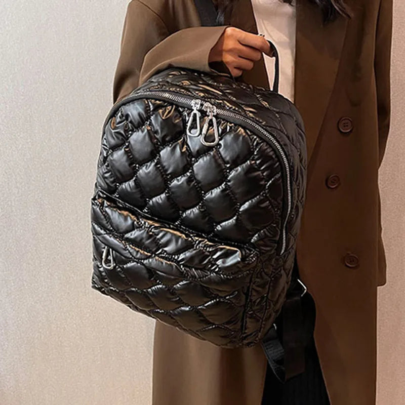 Winter Large Capacity Women's Backpack High Down Fabric Backpacks for Girls