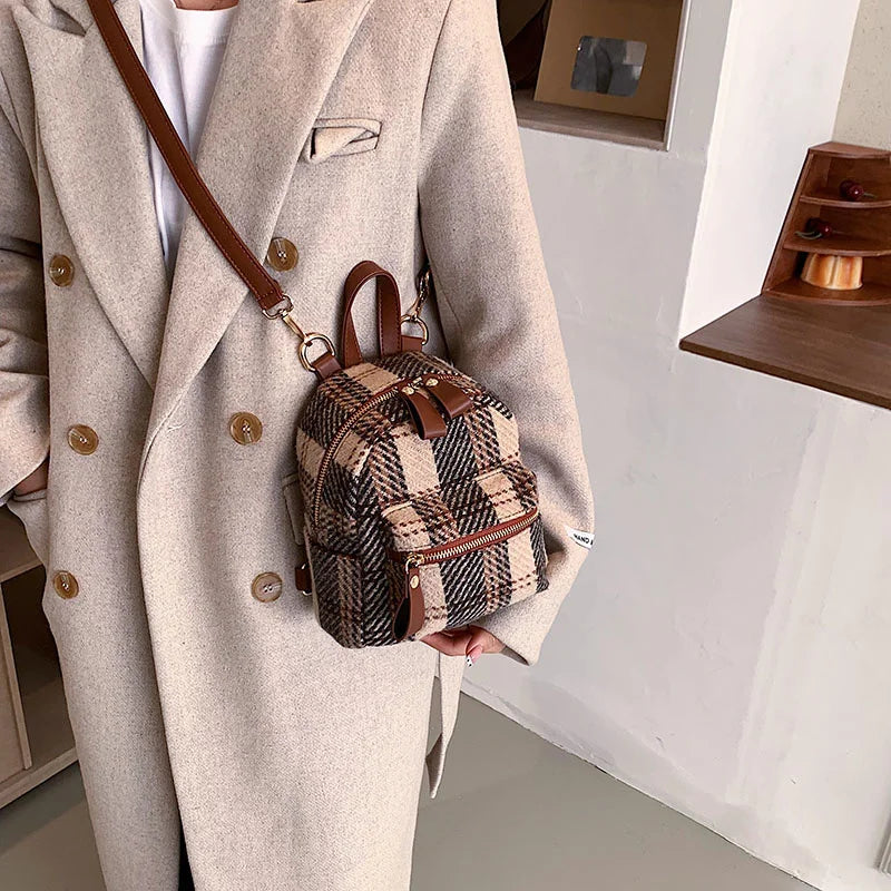 Stay stylish and organized with this plaid nylon backpack, perfect for students and small schoolbag. Featuring a campus stripe design, this backpack is both functional and fashionable.