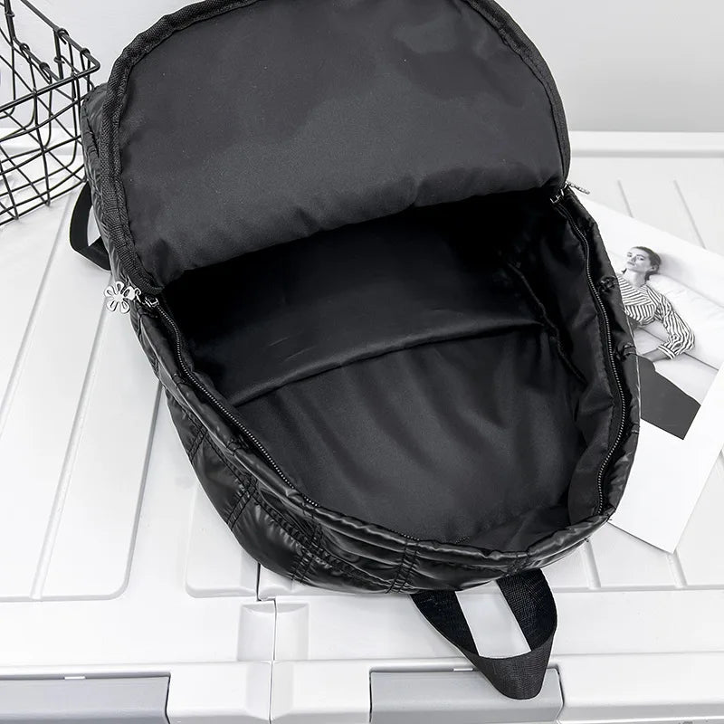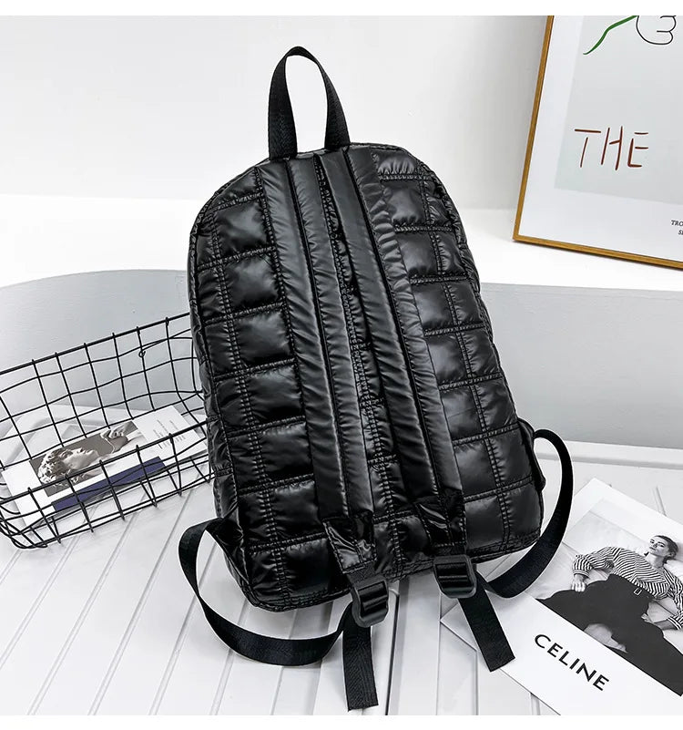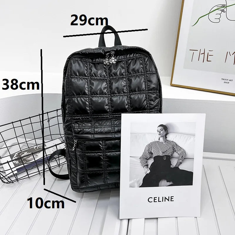 Winter Women Backpack Space Pad Cotton Feather Down Bag Travel Backpacks
