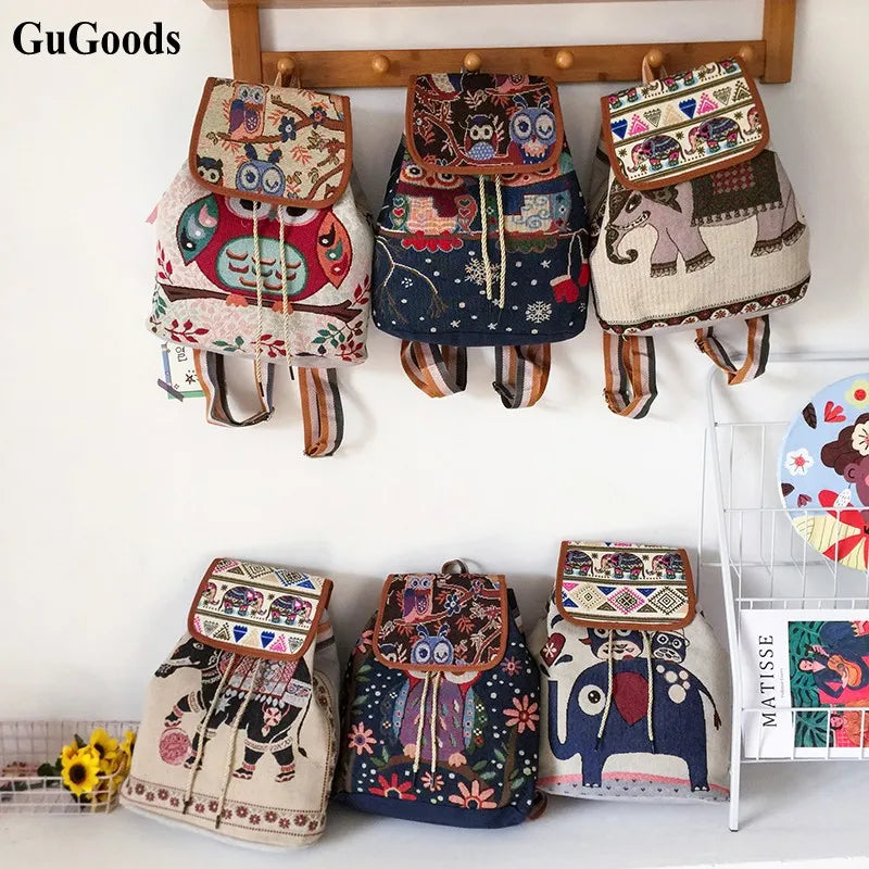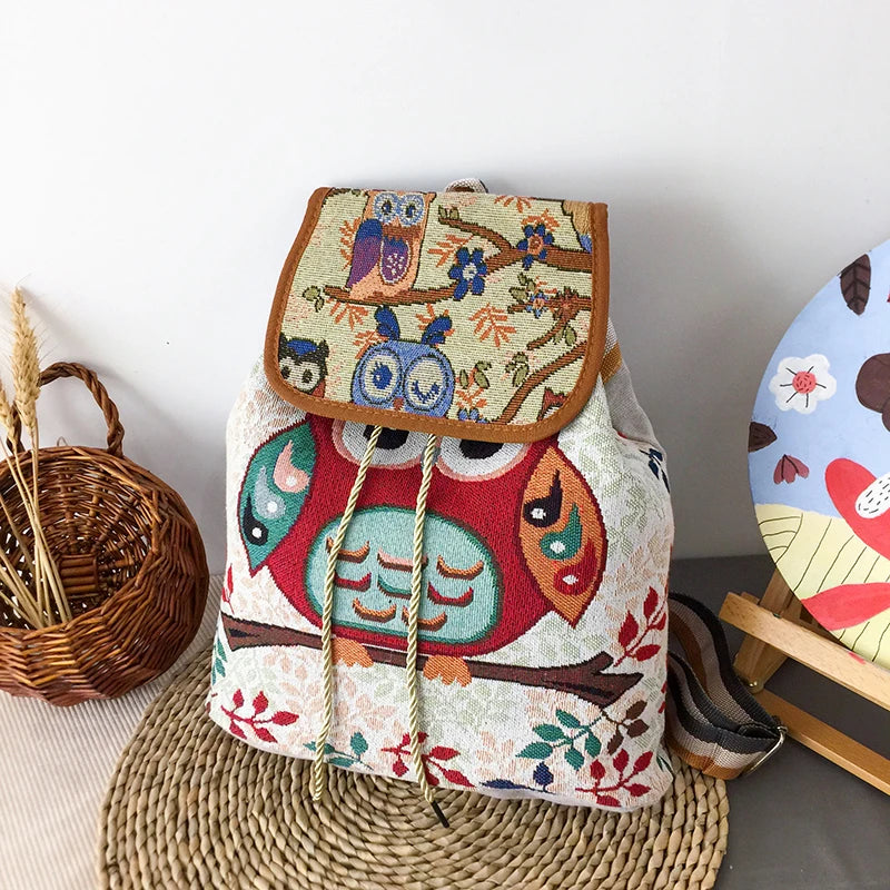 Women Anime Backpack Owl Canvas Shoulder Bag Junior Girls Printed Messenger Bag