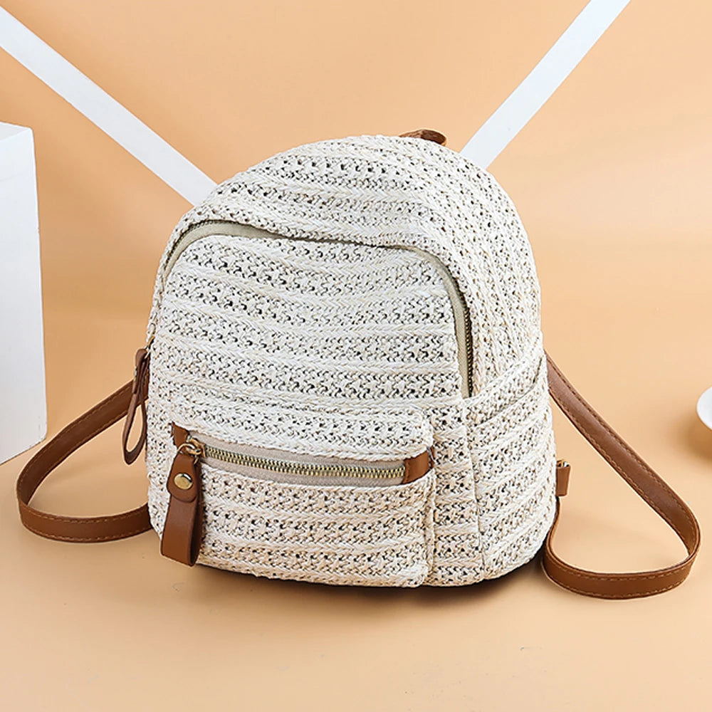 Women Anti-Theft Straw Mini Backpack Summer Shoulder Bag