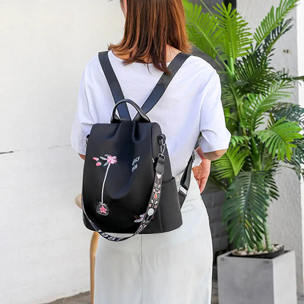 Description:This women backpack is perfect for daily use, travel, school, and more. It features a beautiful flower embroidered design and is made of durable nylon material to keep your valuables safe.Features: Durable nylon material Flower embroidered design Anti-theft design Adjustable shoulder straps Multiple compartments for organization This product may be...