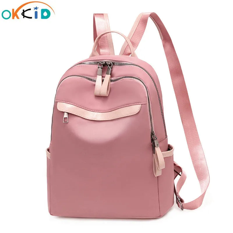 This girl backpack is perfect for school or travel with its lightweight design and pink color. It can easily fit a small laptop and other essentials.