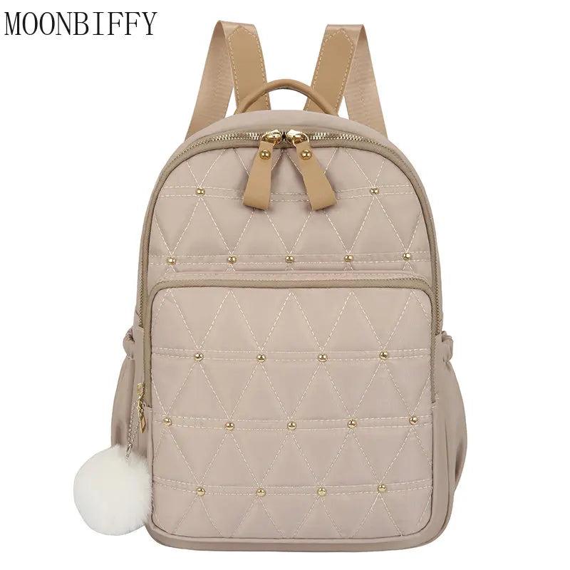 Stay organized and stylish with this multifunctional women's backpack. Made of waterproof nylon, it features anti-theft protection and ample storage space for all your essentials.