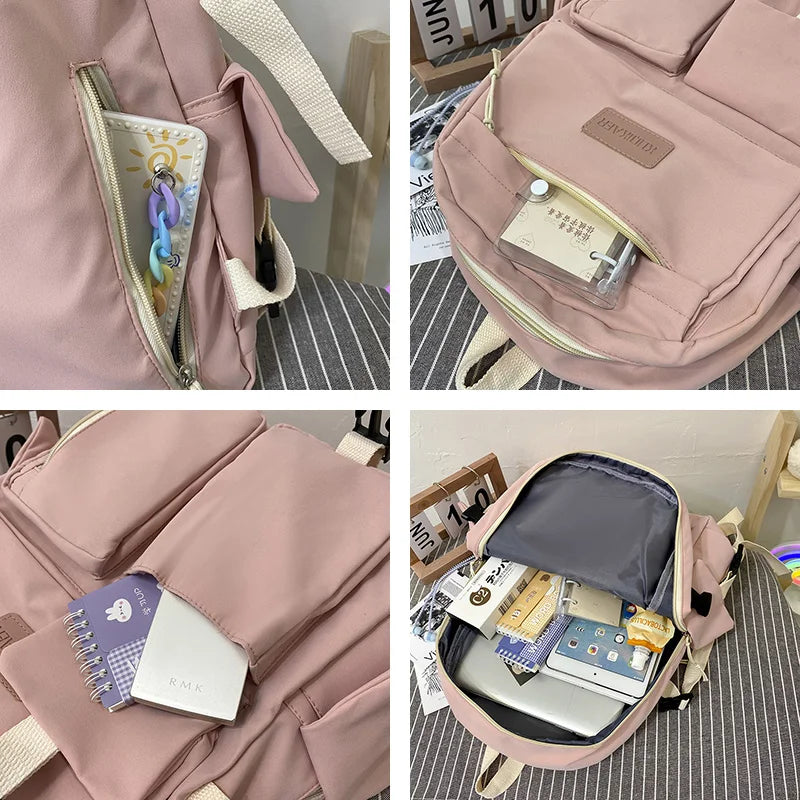 Stay stylish and organized with this anti-theft school backpack made of waterproof nylon. Perfect for girls, it features multiple pockets for all your essentials.