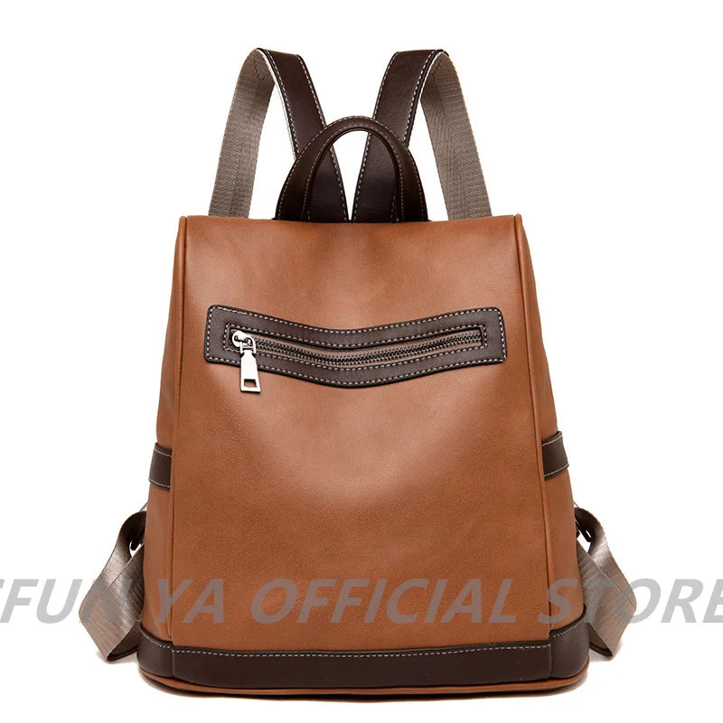 Women Backpack PU Leather Brown Anti-theft Ladies Backpacks School Bag