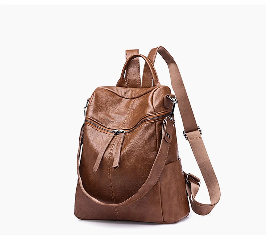 This stylish women's backpack is made of high-quality PU leather, featuring a large capacity and a vintage design. It is perfect for daily use, travel, school, or work.