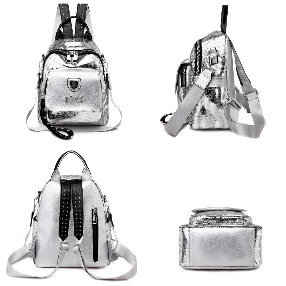 Women Backpack PU Leather School Bags For Teenage Girls 3 in 1 Ladies