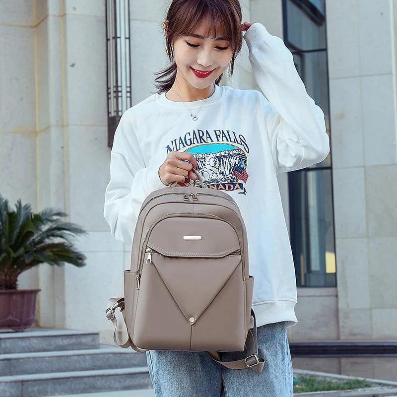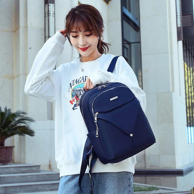 This stylish women's backpack is made of durable Oxford cloth, ideal for school or everyday use. It features a spacious design with adjustable shoulder straps for comfort.