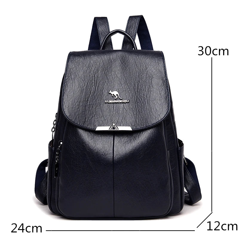 Women Backpack Soft Leather Large Capacity Travel Bag Tote
