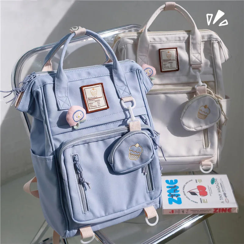 This stylish Harajuku Japanese school backpack is perfect for women on the go. It features a high capacity design with a laptop compartment and waterproof material.
