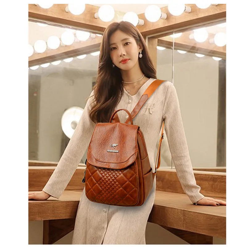 This stylish women's backpack is made of high-quality PU leather, perfect for everyday use and travel. It features a spacious interior, adjustable shoulder straps, and a durable construction.