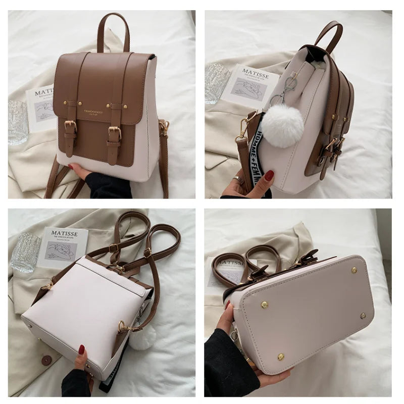 This stylish women's backpack is made of high-quality leather ideal for travel, school, or everyday use.