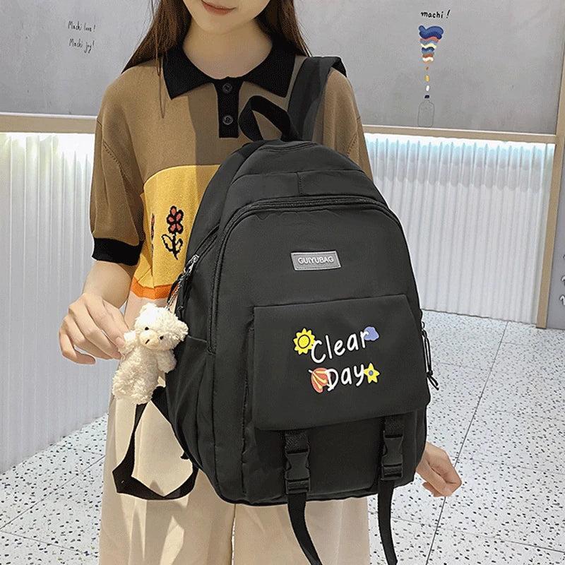 Stay organized and stylish with this women's backpack that offers a large capacity for travel and school. Made of durable nylon material, this backpack is perfect for daily use.