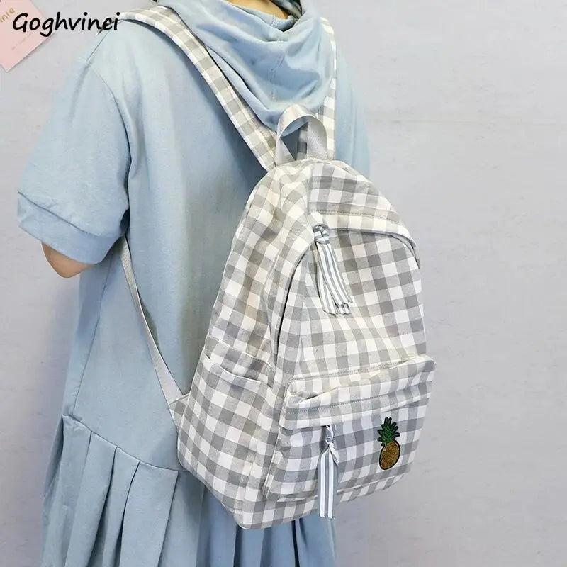 Women Backpacks Plaid Harajuku College Book Bag Zipper Canvas Teens