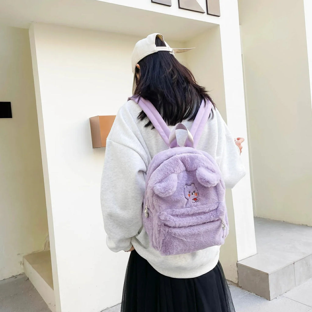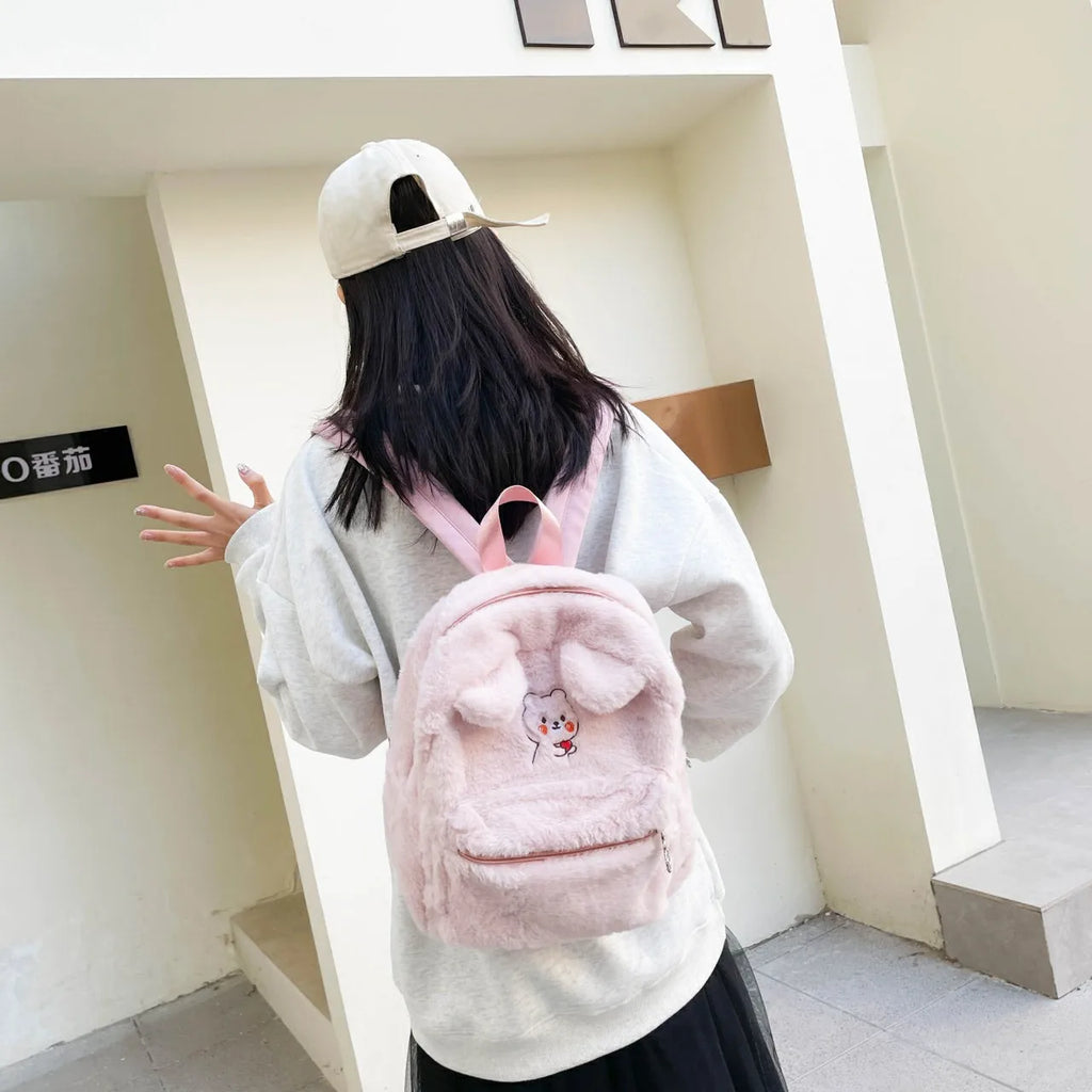 Women Bear Style Plush Backpack Casual Ladies Small Knapsack Mini Rucksacks