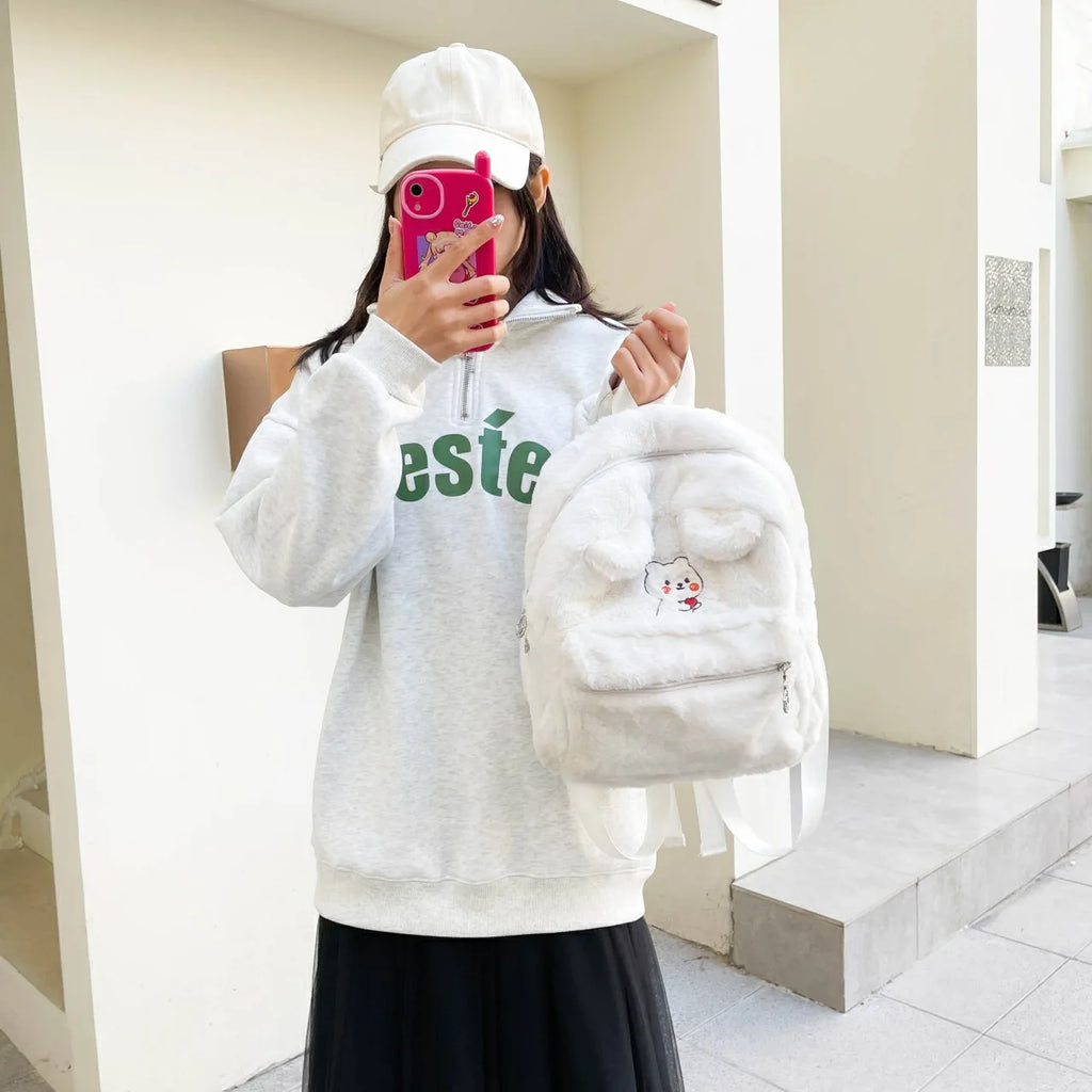 - Bear style plush backpack for a trendy look