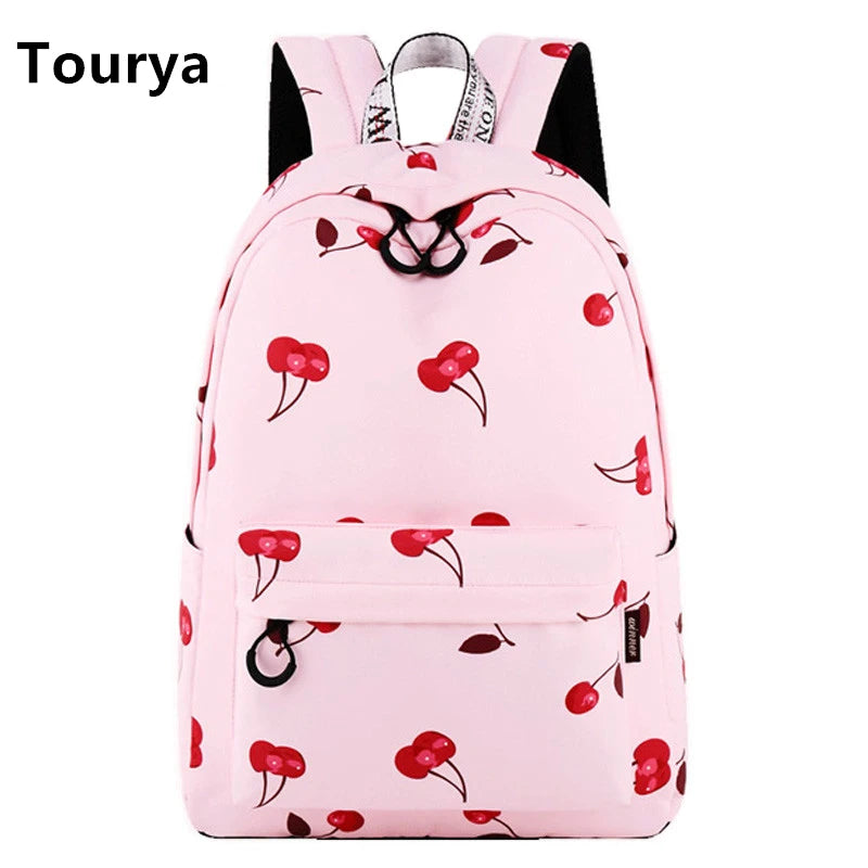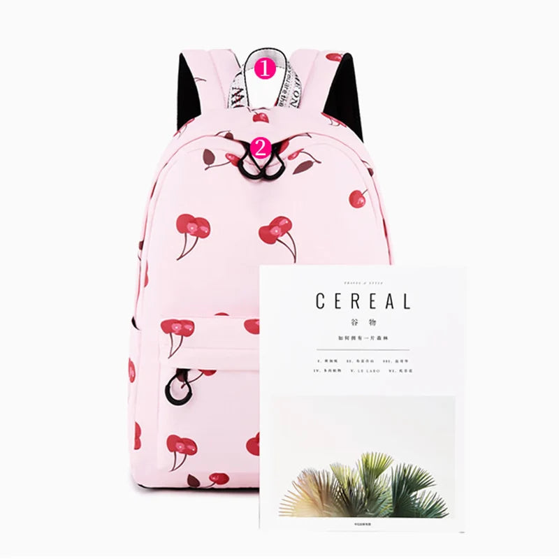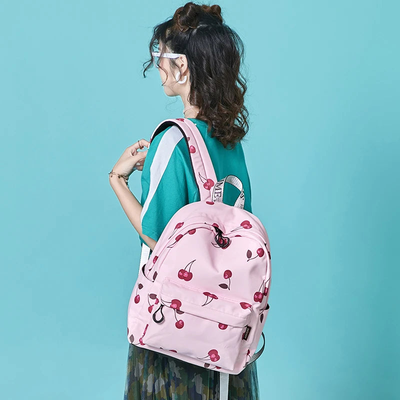 Women Cherry Backpack Polyester School Bags For Teenage Girls
