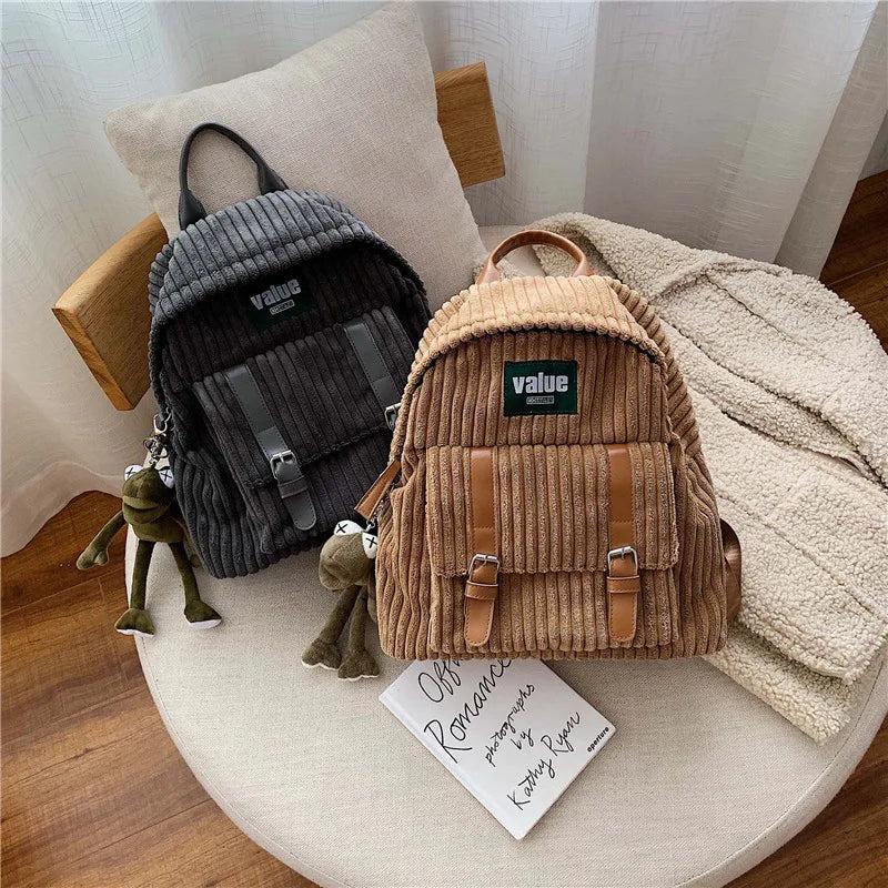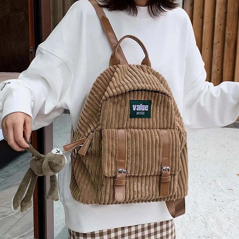 - Fashionable corduroy backpack with striped design