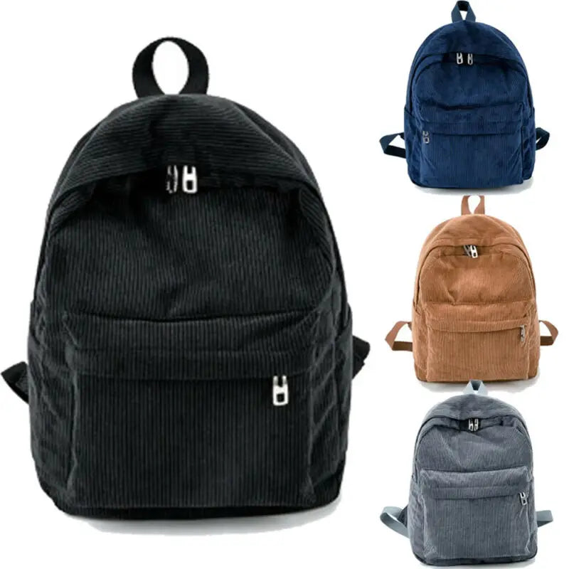 This solid corduroy backpack tote is perfect for school, shoulder travel, and everyday use.
