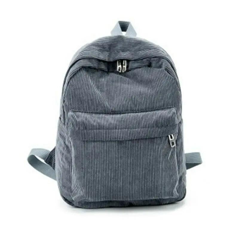 Women Corduroy Backpack Travel Rucksack School Shoulder Bag Gray Khaki