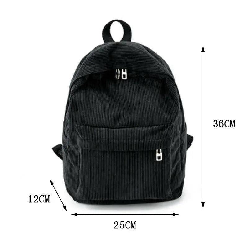 This women's solid corduroy backpack is perfect for school, travel, and everyday use. It offers ample space and a stylish design.