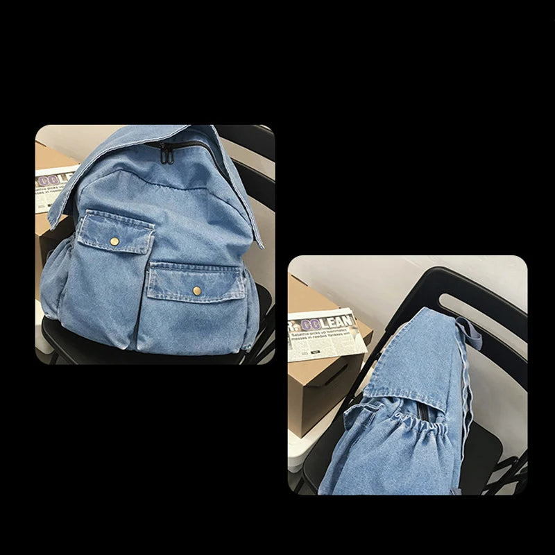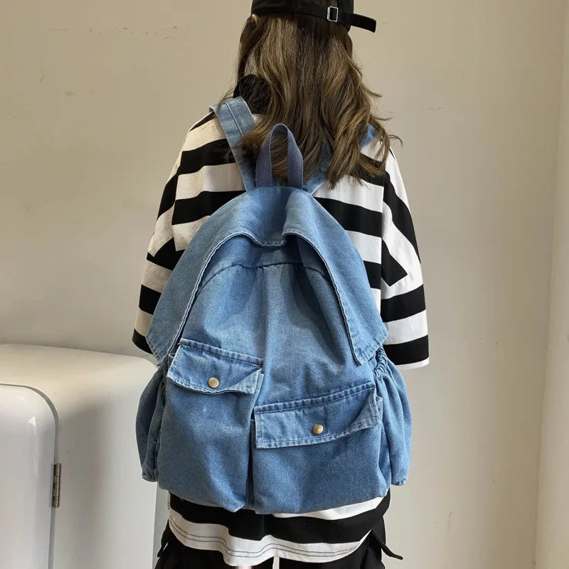 Women Denim All-match Canvas Backpack Lady Vintage Travel Student Bag