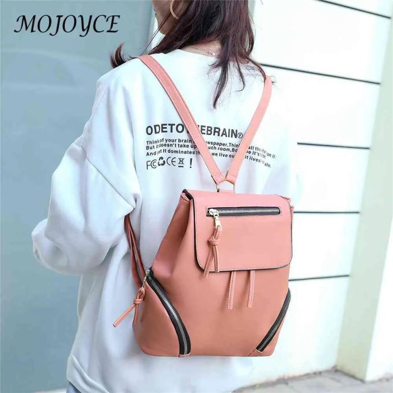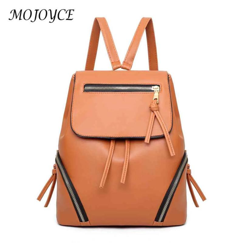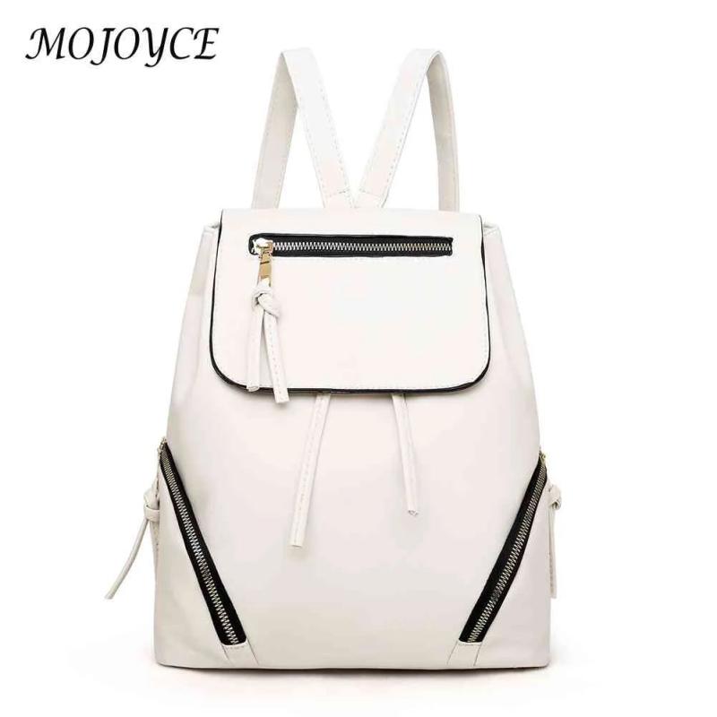 Women Drawstring Backpack Solid PU Leather Travel Classics Vintage