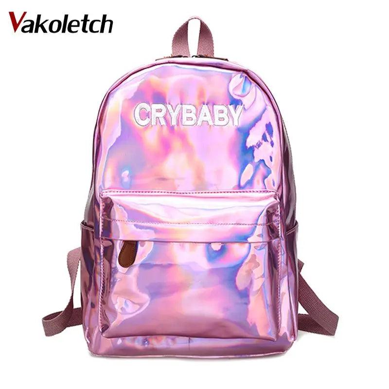 Women Girls Holographic Backpack School Bags Teenage Travel Bags