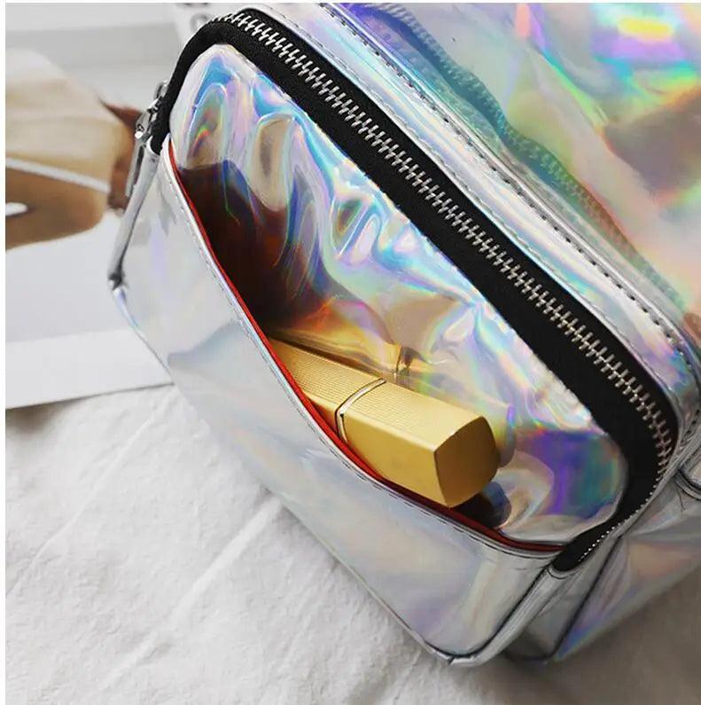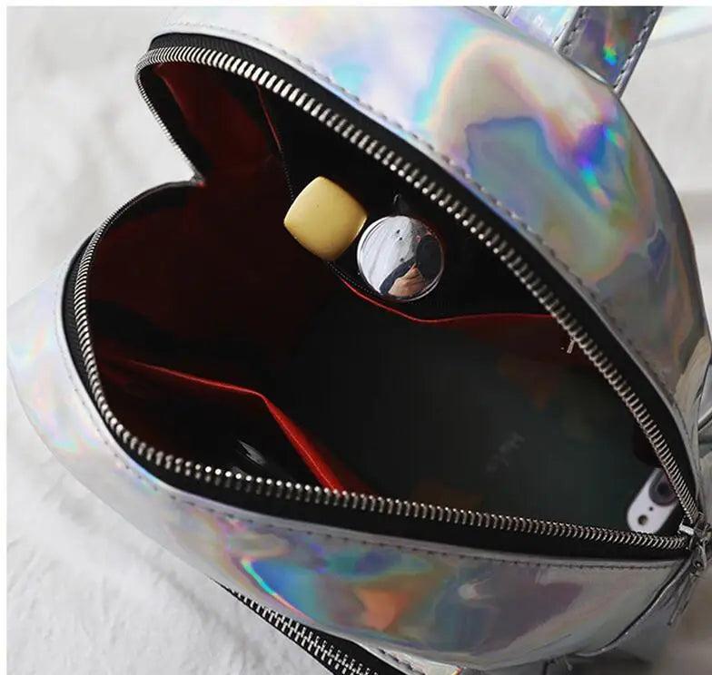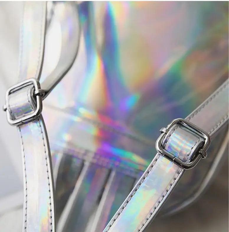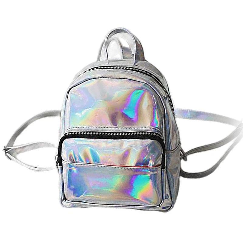 Women Hologram Backpack Laser Daypacks Female Silver Pu Leather Holographic Bags