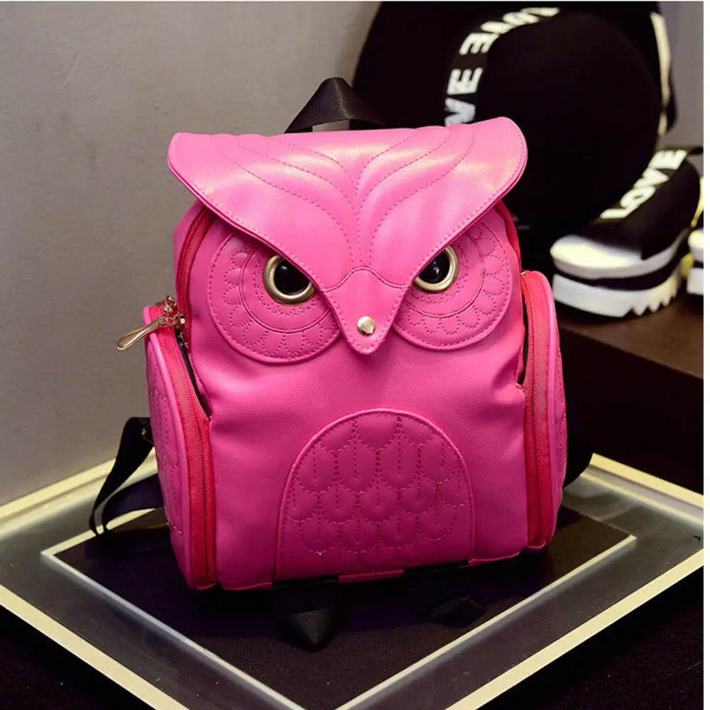 Women Lady Owl Leather Backpack School Girls High Travel Bag Pink