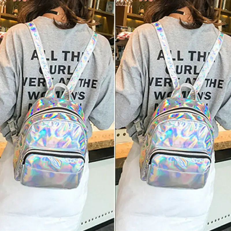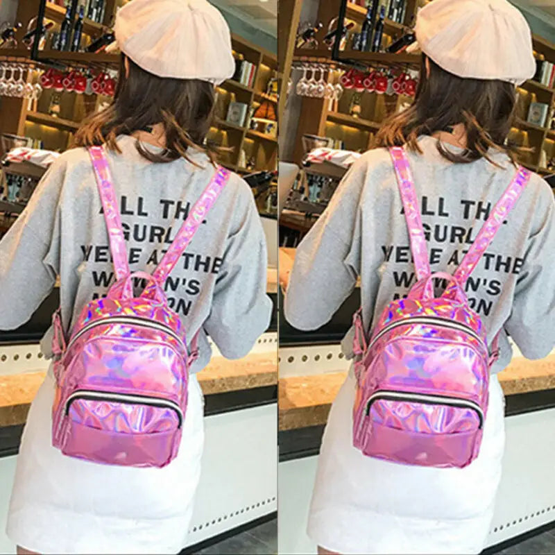 Women Laser Holographic Backpack Student School Bag Travel Rucksack
