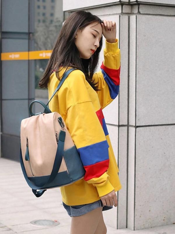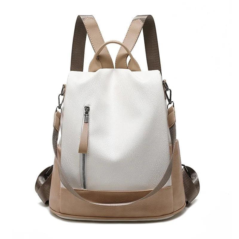 Stay stylish and secure with this women's leather backpack. A versatile anti-theft design in a chic beige khaki color, perfect for school or everyday use.