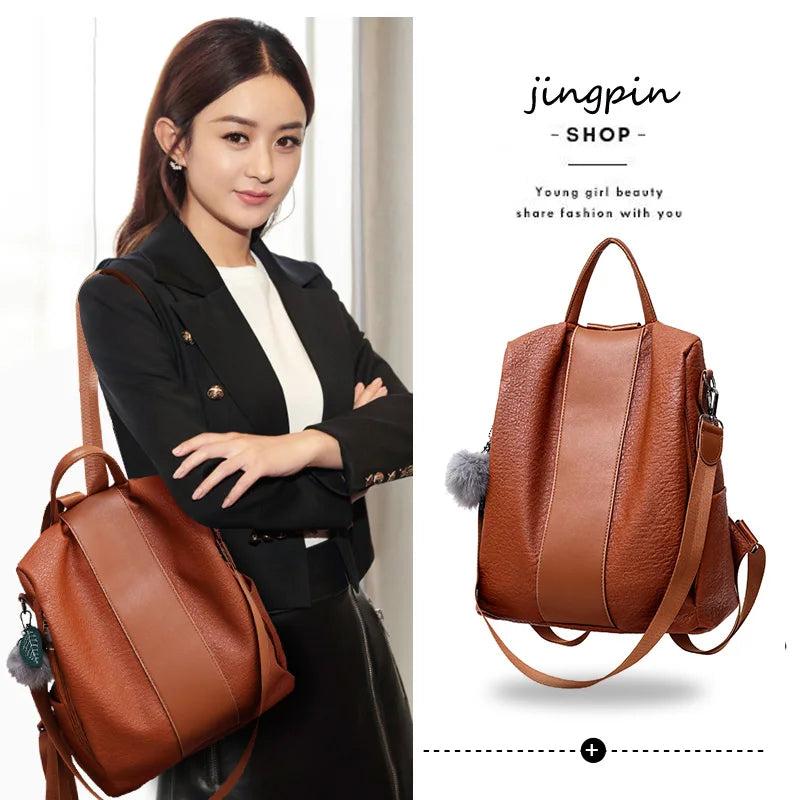 Women Leather Backpack for Teenage Girls School Shoulder Bag