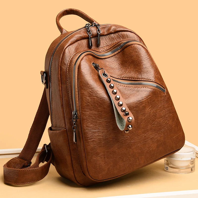 Women Leather Backpack Large Capacity Casual Shoulder Bag for Teenage Girl