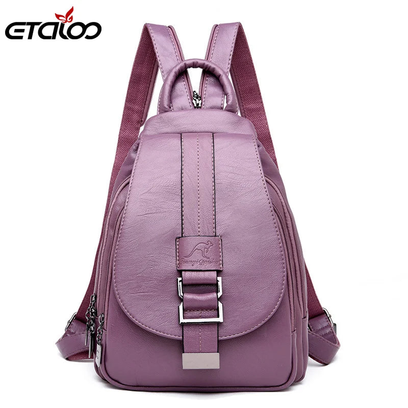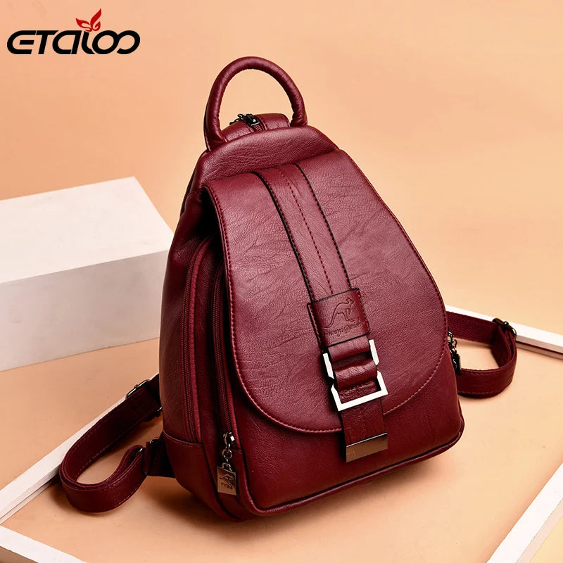 Women Leather Backpacks Female Shoulder Bag Travel Ladies Bagpack