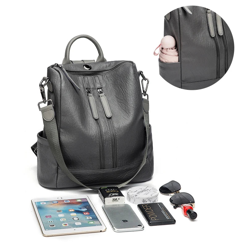 Women Leather Backpacks High Rucksacks Girls Travel Bagpack Ladies Sac Dos