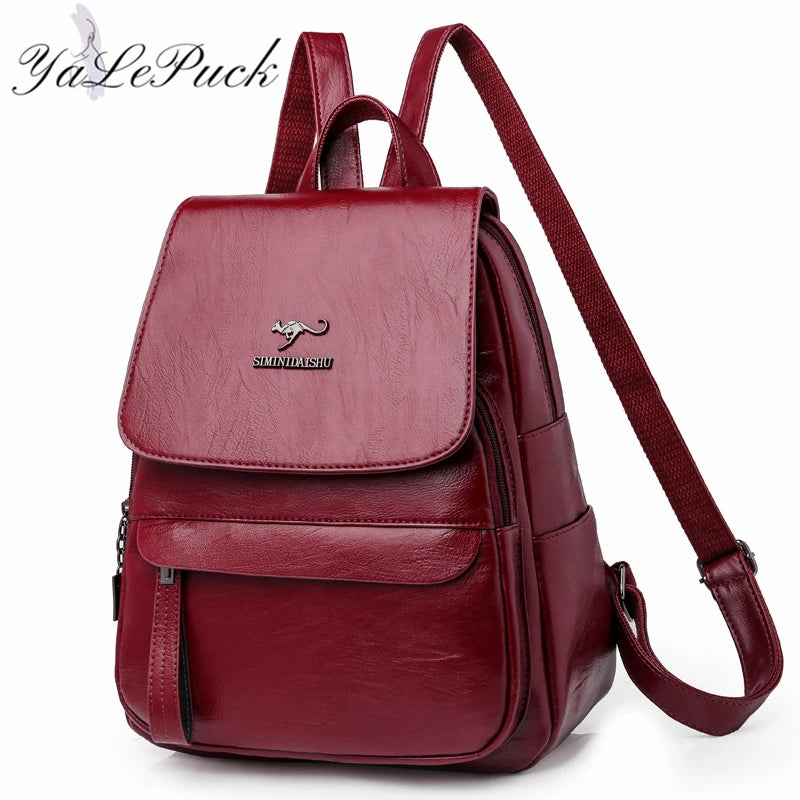 Women Leather School Bag pack Multifunction Shoulder Bags