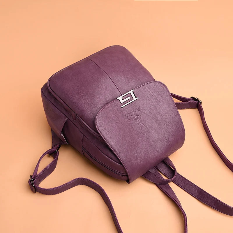 Stay stylish and organized with this high-quality women's backpack made of leather. Perfect for travel and everyday use.
