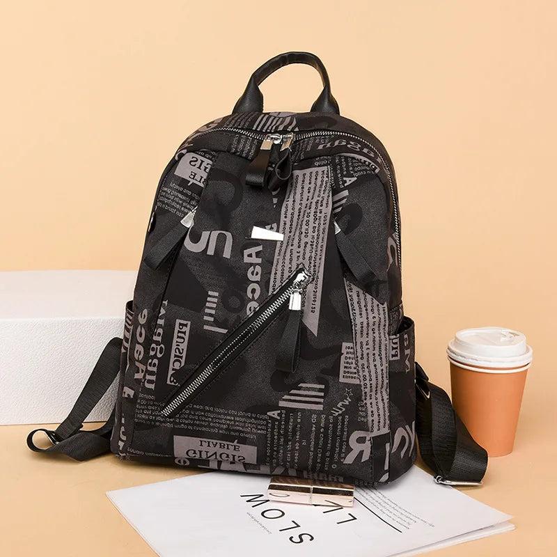 This backpack is made of durable Oxford fabric, featuring a stylish printing design. It is lightweight and perfect for casual outings or travel.