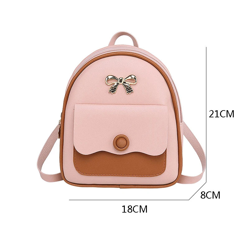 Women Mini Backpack Bow Patchwork Multi-Functional Small PU Leather Bag