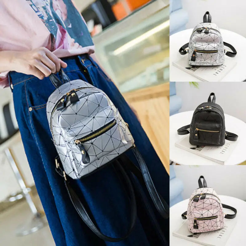 Women Mini Plaid Backpack PU Leather Shoulder School Rucksack