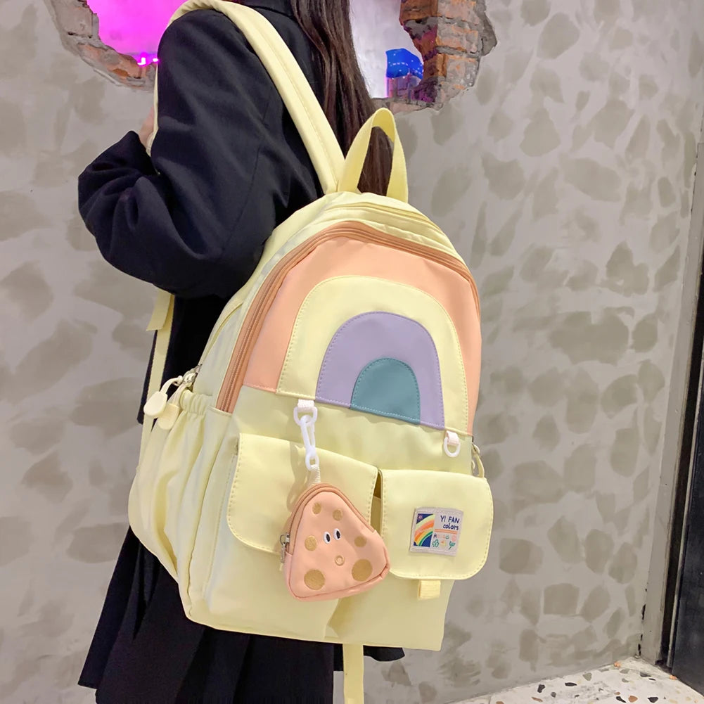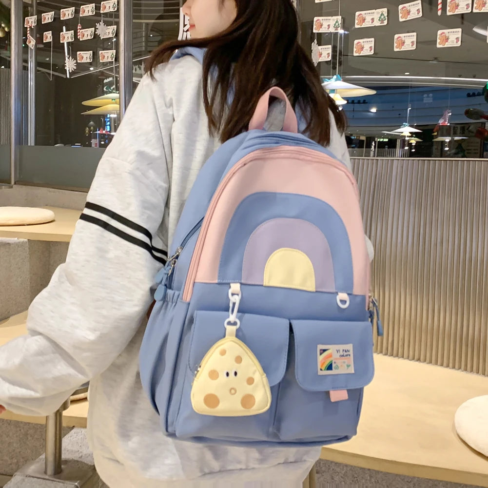 Women Multi-Pocket Nylon School Bag Girl Backpack