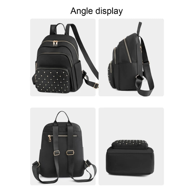 Description:This multi-pocket rivet backpack is perfect for travel, casual outings, and carrying your computer. The stylish design is ideal for girls and women.Features: Versatile backpack with multiple pockets for organization Features stylish rivet accents for a trendy look Adjustable shoulder straps for comfortable carrying Ideal for travel, work, school, and...
